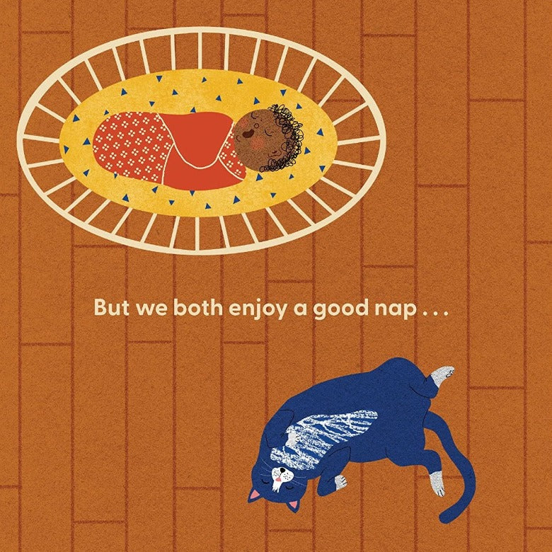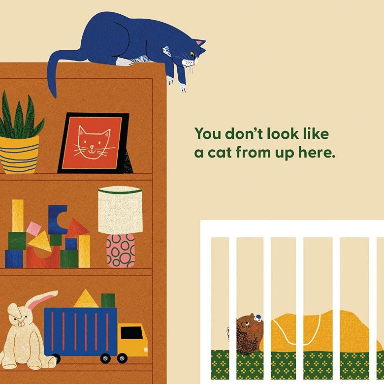 One day Cat's humans bring home a new family member, and the curios feline is determined to sniff out the truth. It doesn't meow like a cat, or smell like a cat, or even have a tail like a cat. As cat investigates, he discovers the many ways that he and baby are alike and different- and he might just find a new best friend.