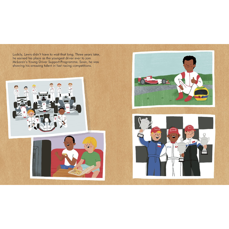 Little Lewis's childhood was filled with cars, motorcycles and watching Formula One with his dad. On his fifth birthday, he was given a remote-controlled racing car, and he joined a local club. It was hard being the only black child there, but he listened to his dad's words: 'Let your results speak for you.' At the age of 10 he became the youngest ever winner of the British cadet go-karting competition. This inspiring book features stylish and quirky illustrations and extra facts at the back, including a biographical timeline.