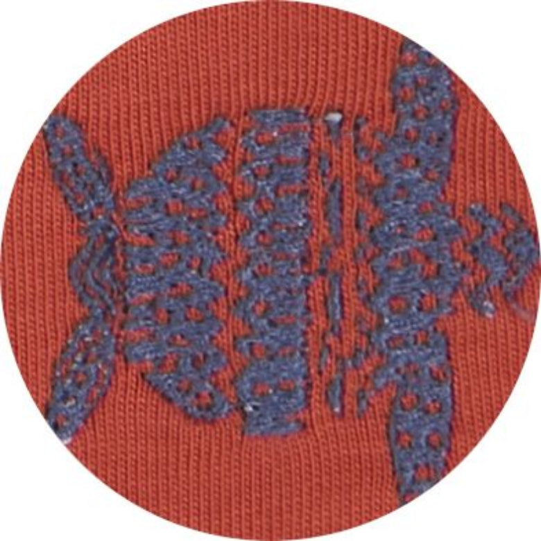 These orange jersey shorts feature a charming embroidered turtle that adds personality to everyday wear. The pull-on design eliminates fussy fastenings, offering quick dressing for active children. Great for dressing up or dressing down.
