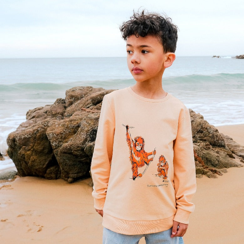 The all-over hand-drawn print showcases the cheekiest chap in the jungle, the Sumatran Orangutan, lets your little wild-one get up close to the magic of nature.