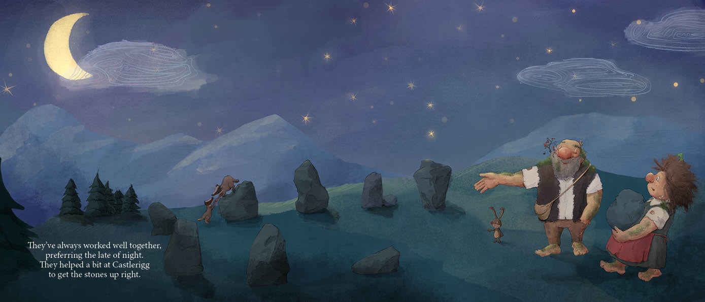 Step into the whimsical world of The Grunts, a kind- hearted pair who clumsily knock over walls, when out moving boulders for walkers to rest and children to play. Spot well known Lake District places in this heartwarming tale.